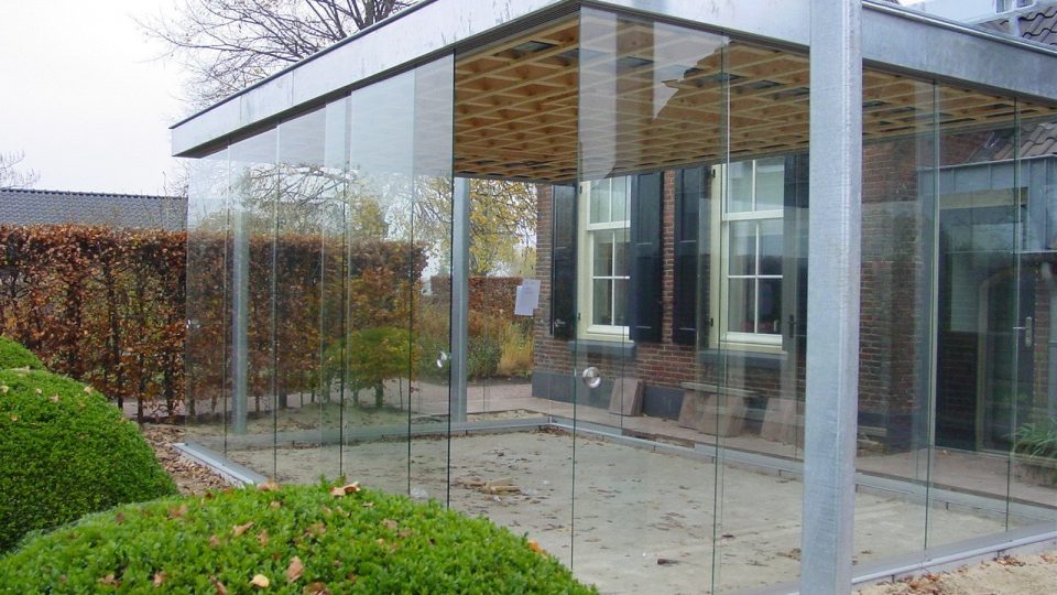 Sunflex Glass doors are a stylish option to finish your outdoor space. Clean, minimal glass panels create a seamless view from inside to out.