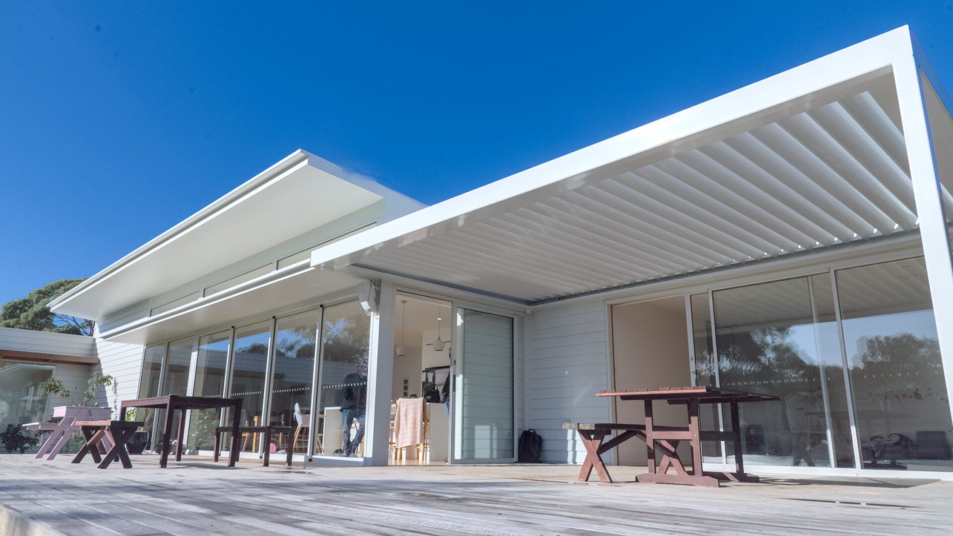Our opening roof system was fully integrated with the build of this new home in Carlton Beach. The opening roof provides control over the lighting conditions on the deck, allowing the owners to enjoy the deck at any hour of a sunny day.